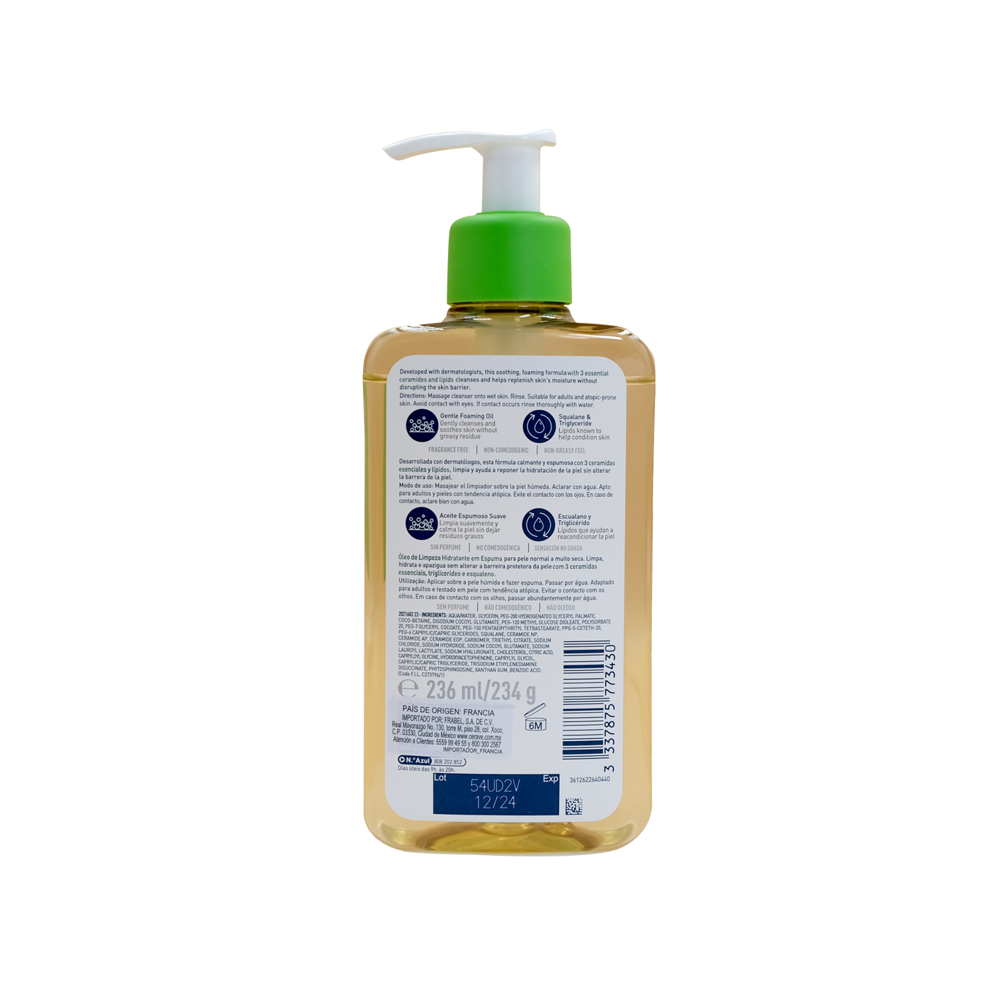Cerave gel limpiador espumoso 473 ml.